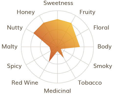 Frutiy, honey, butter, citrus, smoky, peaty, caned fruit and malty. A hint of baked sweet potato.palate