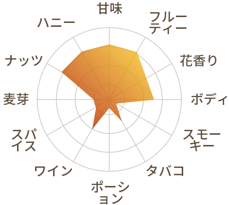 舌の先には、花蜜のような甘さが明らかに感じられます。鼻腔には、サトウキビの甘さと温かな味が満ちています。口当たり